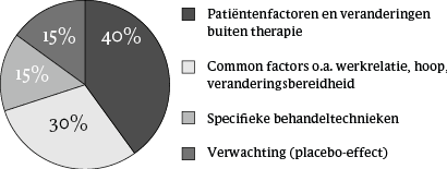 Binnen het praktijkonderwijs en het praktijkveld bestaat veel sympathie voor deze opvatting: 'Uiteindelijk is het toch het goede therapeutische contact waardoor patiënten opknappen.' Ter ondersteuning van deze opvatting verwijst men binnen het praktijkonderwijs, ook in recente handboeken (bijvoorbeeld Colijn, Snijders & Trijsburg, 2009), graag naar de zogenaamde 'cirkel van Lambert' (figuur 1). De 'cirkel' is immers ontwikkeld door een gerenommeerd kenner van de onderzoeksliteratuur.