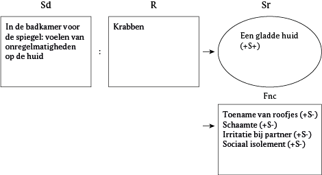Een functieanalyse van het krabgedrag kan echter ook aanleiding zijn om andere interventies in te zetten (zoals cue exposure aan het verdragen van een onregelmatige huid) of andere copingstrategieën (zoals crème smeren op onregelmatige plekken).