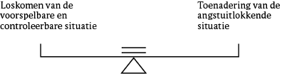 Ter illustratie van deze gedachtegang kunnen we ons de angsthiërachie voorstellen als een wip (zie figuur 5). De cliënt maakt vorderingen en klimt stap voor stap omhoog in de richting van de situatie die de grootste angst uitlokt. Hij blijft echter voldoende dicht bij het voorspelbare en controleerbare. Wanneer de cliënt voorbij het kantelpunt komt, slaat de wip om. De angstuitlokkende situatie komt veel dichterbij en het bekende lijkt veraf. Er ontstaat angst, die de cliënt op zijn stappen doet terugkeren. De wip zal snel omslaan naar een terugkeer naar de bekende situatie, waardoor de angst afneemt en het gevoel van veiligheid terugkeert, wat voor de cliënt sterke bekrachtigingen zijn (-S- en +S+). Deze vergelijking duidt de moeilijke weg aan die cliënten moeten afleggen tijdens een graduele exposure. Meer dan zich typisch ontwikkelende leeftijdgenoten zullen kinderen en adolescenten met ASS moeite hebben om los te komen van het voorspelbare en controleerbare, en om toch de angstuitlokkende situatie te betreden, tenzij ze ervaren dat de oorspronkelijke bekrachtiging niet meer aanwezig is.