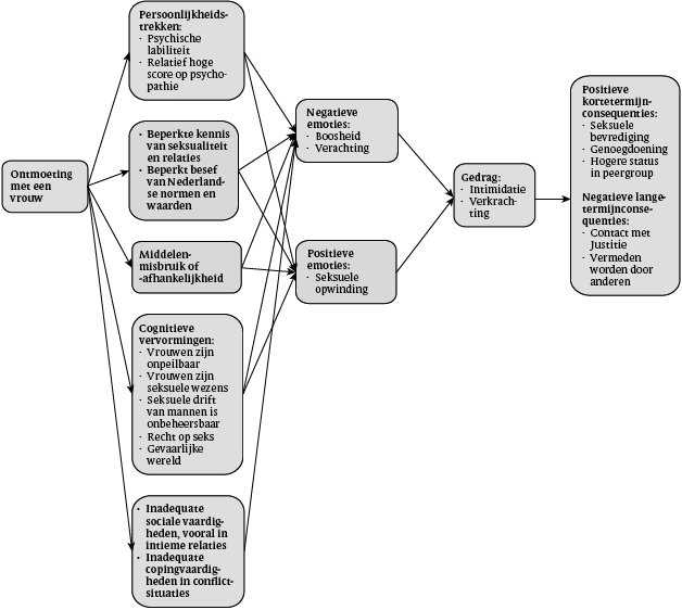 Figuur 2 Model met factoren die seksueel gewelddadig gedrag door heteroseksuele verkrachters in stand houden