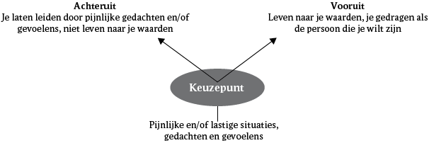 Een belangrijke toevoeging aan de huidige uitgave ten opzichte van de editie uit 2010 is het 'keuzepunt' (zie figuur 2). Het keuzepunt is een simpele en gemakkelijke tool om cliënten te helpen om ACT snel en doeltreffend toe te passen. Schrijver Russ Harris geeft aan tegenwoordig al zijn cliënten ACT te leren aan de hand van het keuzepunt. Het keuzepunt gaat ervan uit dat je in elke situatie een keuze kunt maken om naar je waarden toe te bewegen of van je waarden af te bewegen. In de ACT-behandeling bepaalt de therapeut samen met de cliënt welke waarden deze heeft. Dit klinkt simpel en in theorie is het dat ook. Leven naar je waarden is echter zo makkelijk nog niet. Dat maakt dat de uitleg van het keuzepunt aan het begin van dit boek erg verhelderend is om ACT (beter) onder de knie te krijgen.