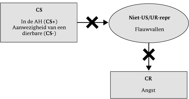 | Het uitblijven van de US/UR wordt niet geassocieerd met de CS+, maar met de aanwezigheid van de CS-. De CS+ behoudt daardoor zijn angstaanjagende betekenis. |